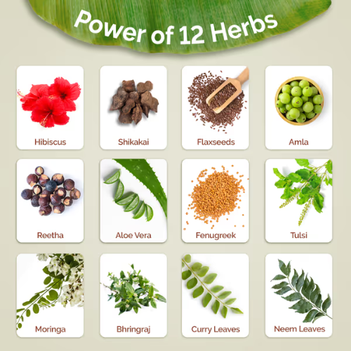 • Reetha & Shikakai: Cleanse the scalp gently and enhance shine.
