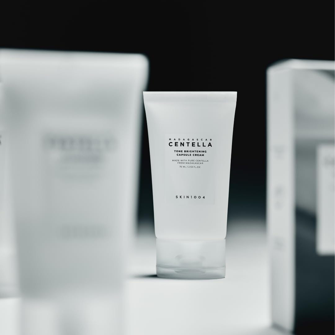 SKIN1004 Madagascar Centella Tone Brightening Capsule Cream (75ml) is a radiance-boosting moisturizer that helps brighten dull skin while providing soothing hydration. Enriched with Madagascar Centella Asiatica extract and encapsulated brightening beads, it delivers powerful calming and skin-evening benefits in every application. The lightweight cream absorbs quickly, leaving skin refreshed, hydrated, and visibly more luminous without greasiness. Perfect for sensitive and uneven skin tones, this cream supports a clearer, glowing, and healthy-looking complexion.